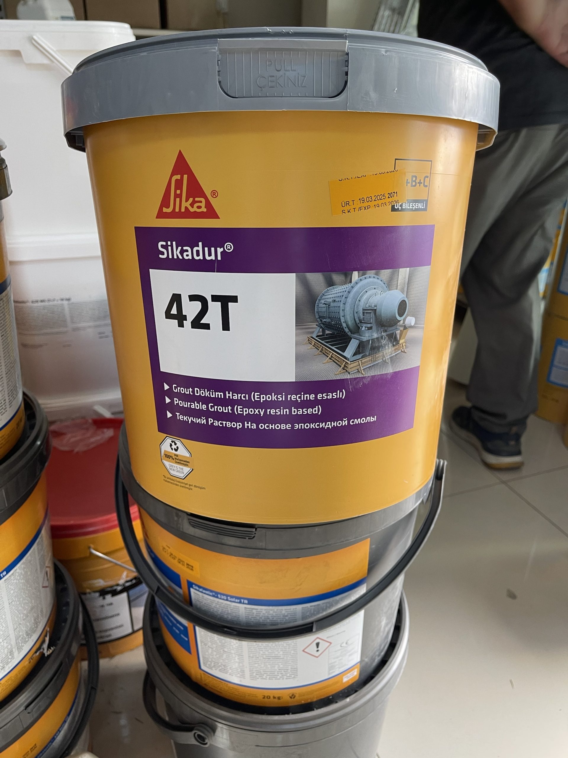Sikadur®-42 T, solvent içermeyen, 3 bileşenli, özel gradasyonlu agregalar ve yüksek dayanımlı epoksi reçinelerin bileşiminden oluşan döküm harcıdır. Karıştırıldığında akıcı, kendiliğinden yayılan epoksi döküm harcı (grout) elde edilir.